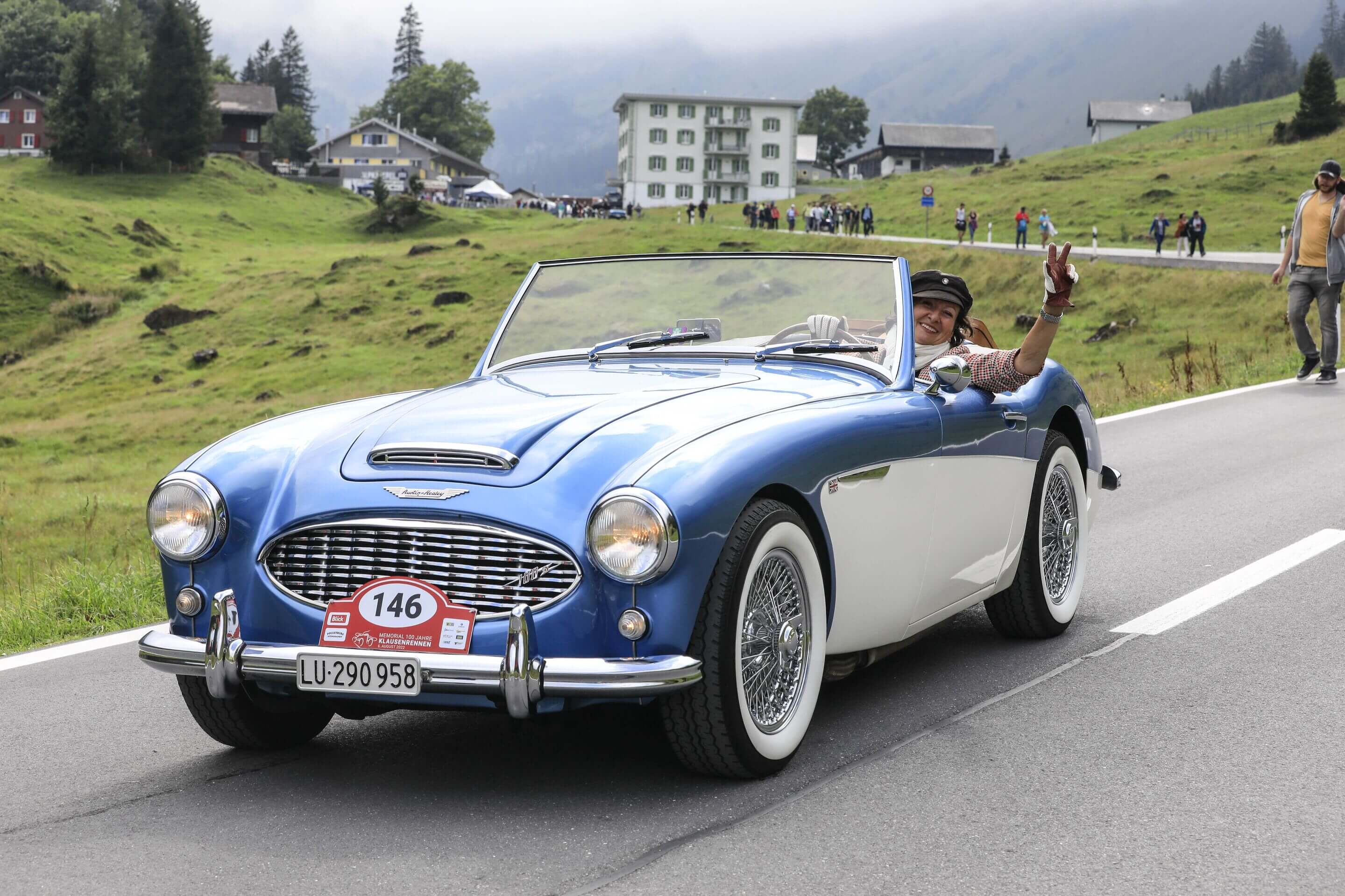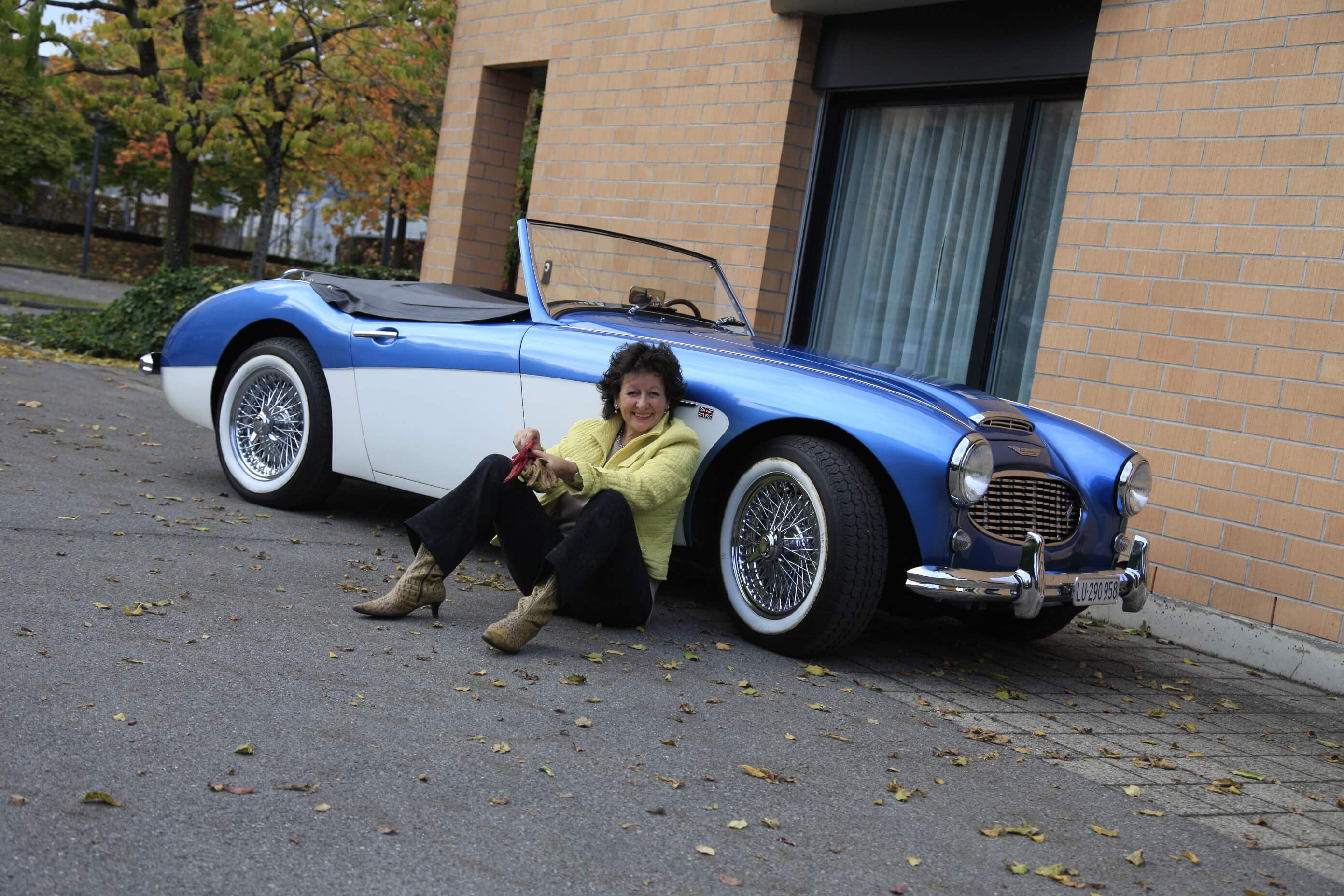 Als Oldtimerbesitzerin und begeisterte Fahrerin trifft man den blau-weissen Flitzer auf dem Weg zu besonderen Orten und Menschen. Mein Austin Healey 100-6 mit Jahrgang 1958 ist ein wahrer Türöffner – emotional, kompromisslos und ‘fadegrad’ fährt er in die Herzen der Menschen!